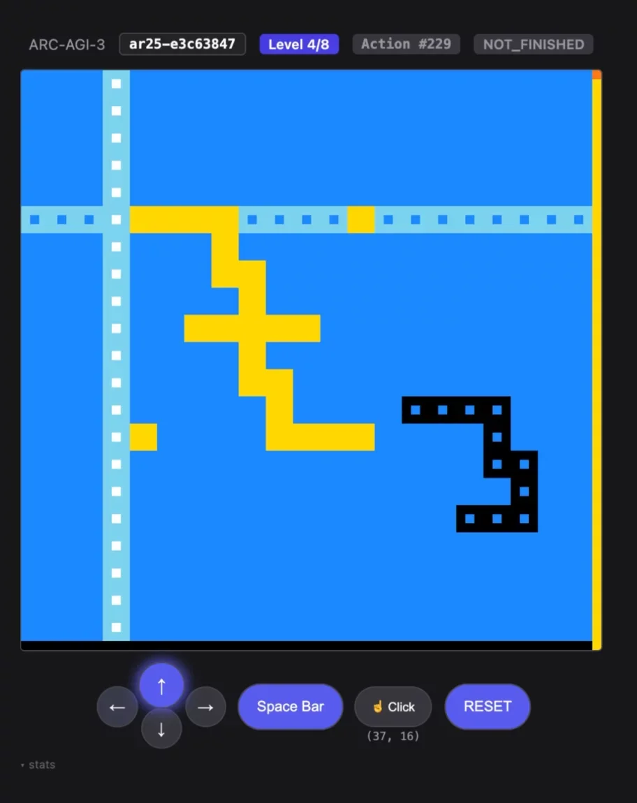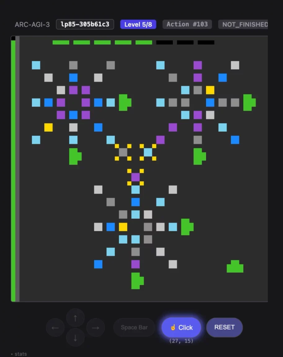 Symbolica's Agentica SDK demonstrates a 36.08% unverified performance on the ARC-AGI-3 benchmark [1], successfully solving 113 of 182 playable challenges and completing 7 of 25 available game scenarios [2].